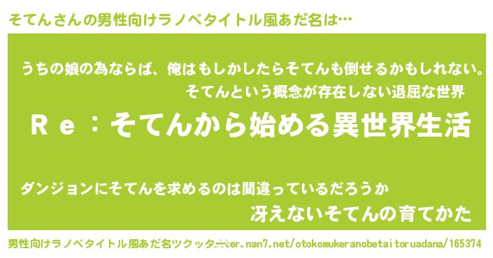 | 女子向けラノベタイトル風あだ名 | 『闇のそてん』『そてんの婚約者』 |