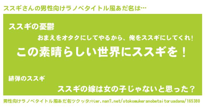 | 意味不明あだ名 | 『住所不定無職ススギ(43歳)』『自称ススギ』 |
