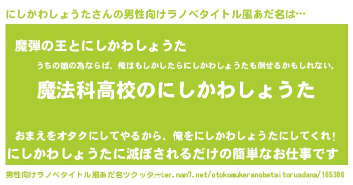 | 女子向けラノベタイトル風あだ名 | 『にしかわしょうたアンティーク』 |