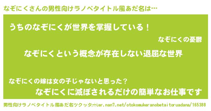 | 女子向けラノベタイトル風あだ名 | 『異世界で失敗しない100のなぞにく』 |