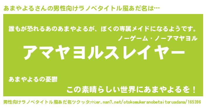 | ヒーロー風カッコイイあだ名 | 『ネオアマヤヨル』『仮面アマダー』 |