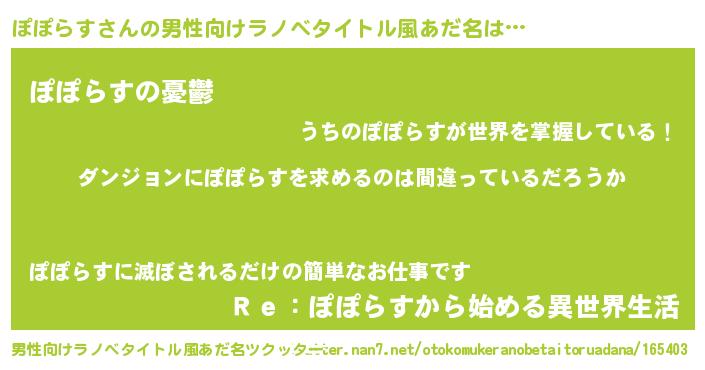 | ポケモン風あだ名 | 『ヒポポラス』『ポポチュウ』 |