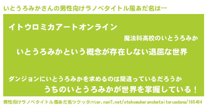 | 胡散臭い通販商品みたいなあだ名 | 『来世でも幸せになれる水素水…その名も「いとうろみか」』 |