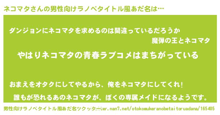| 女子向けラノベタイトル風あだ名 | 『ネコマタの雑貨屋さん』 |