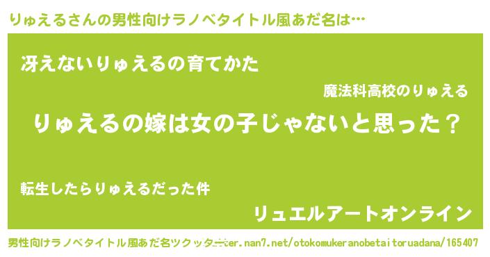 女子向けラノベタイトル風あだ名 | 『りゅえる様がみてる』 |