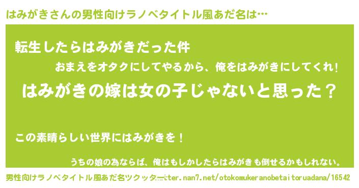 | 胡散臭い通販商品みたいなあだ名 | 『全米が絶賛したサプリメント…その名も「はみがき」』 |
