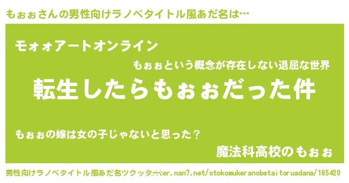 | 胡散臭い通販商品みたいなあだ名 | 『モテモテ間違いなし霊験あらたかなお札…その名も「もぉぉ」』 |