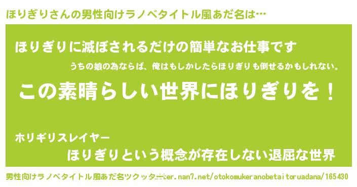 | 女子向けラノベタイトル風あだ名 | 『悪役ほりぎりに転生したようですが、知った事ではありません』 |