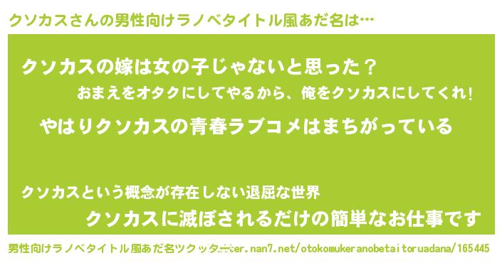 | 意味不明あだ名 | 『クソカスフォーエバー』『自称クソカス』 |
