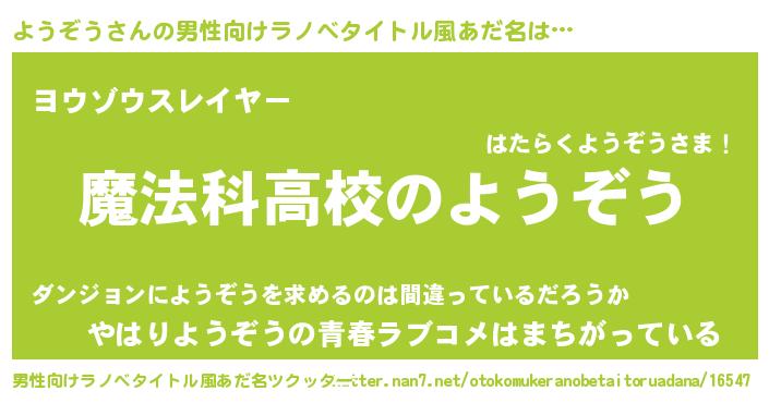 | 胡散臭い通販商品みたいなあだ名 | 『ガンによく効くアガリクス…その名も「ようぞう」』 |