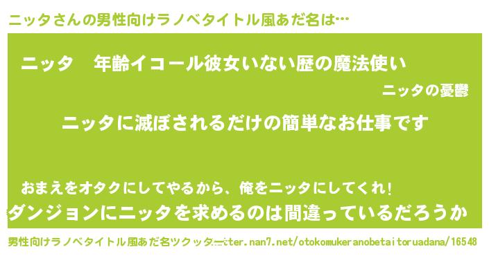 ヒーロー風カッコイイあだ名 | 『天弓騎士ニッ』『スーパーニッタ』 |