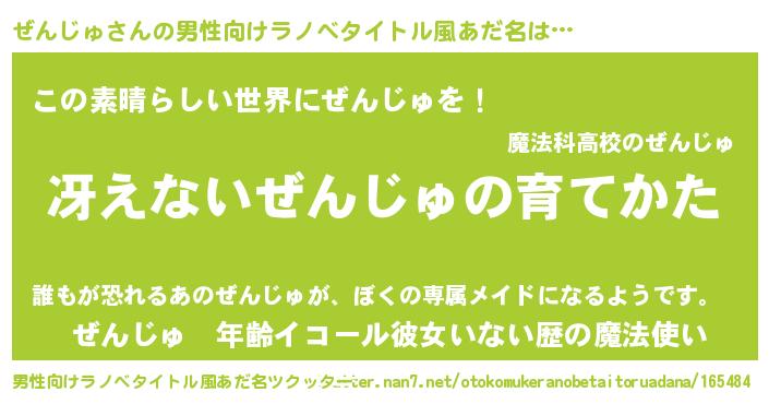 | ヒーロー風カッコイイあだ名 | 『仮面ゼンダー』『最強戦士ゼンジュ』 |
