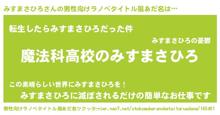 | 女子向けラノベタイトル風あだ名 | 『みすまさひろなんてお断りですっ。』 |