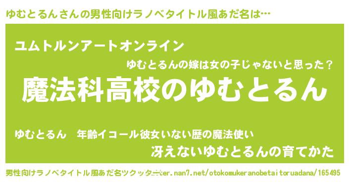 | 意味不明あだ名 | 『自称ゆむとるん』『ペロリンゆむとるん』 |