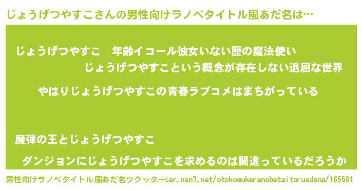 じょうげつやすこさんの男性向けラノベタイトル風あだ名をツクッター!