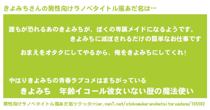 | ヘコむあだ名 | 『きよみち(笑)』『なまこ酢』 |