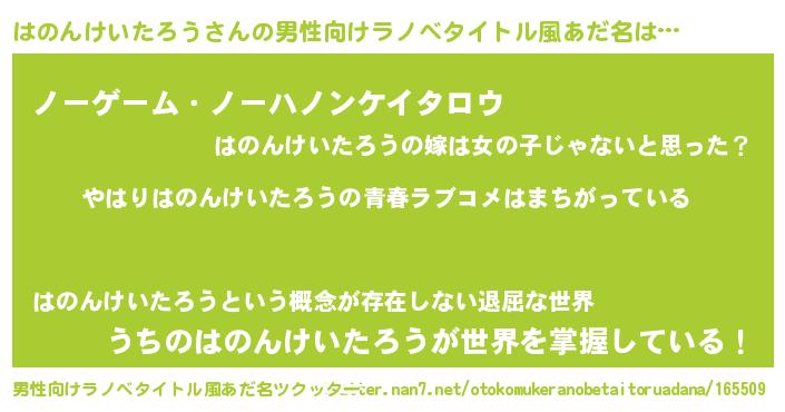 | ファンタジー風あだ名 | 『エターナルハノンケイタロウー』 |