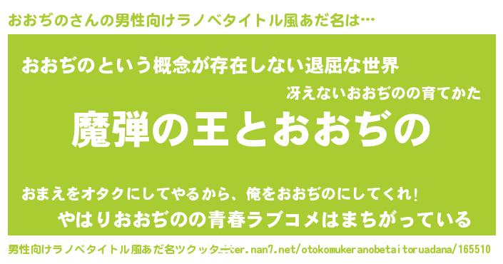 | 意味不明あだ名 | 『住所不定無職おおぢの(6歳)』 |