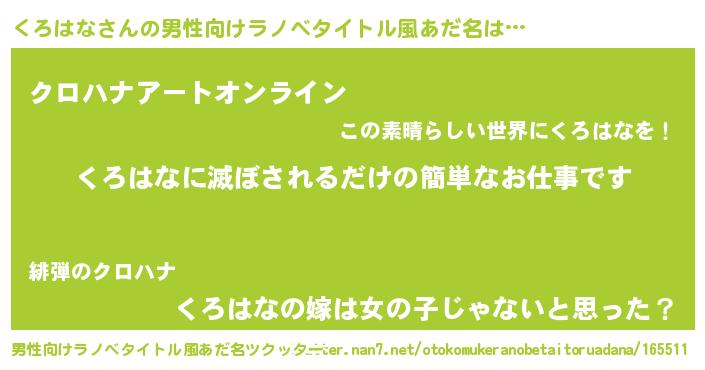 | 胡散臭い通販商品みたいなあだ名 | 『億万長者になれるブレスレット…その名も「くろはな」』 |