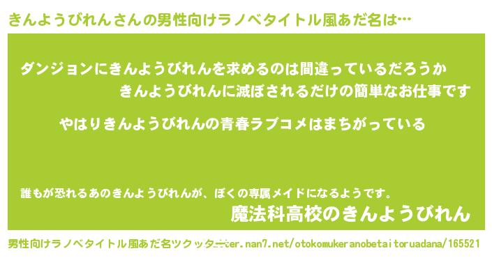 | ファンタジー風あだ名 | 『エターナルキンヨウビレンー』 |
