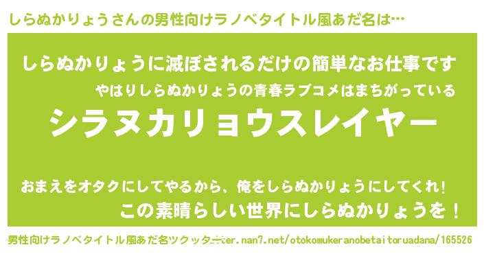 | ヒーロー風カッコイイあだ名 | 『仮面シラダー』『ネオシラヌカリョウ』 |