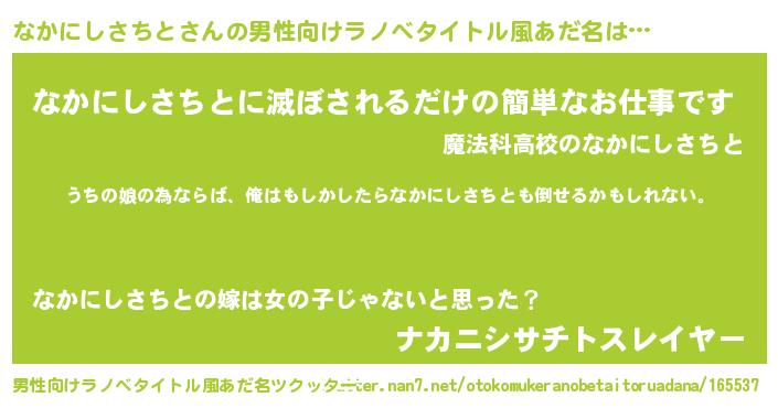 | 伝説のあだ名 | 『最古の陰陽師なかにしさちと』 |