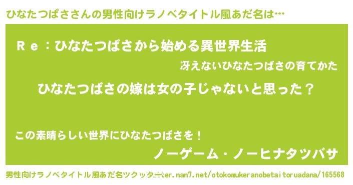 | 意味不明あだ名 | 『とにかく怪しいひなたつばさ』 |