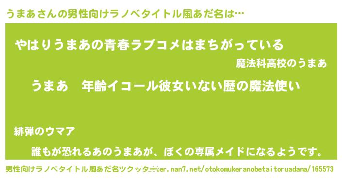 うまあさんの男性向けラノベタイトル風あだ名をツクッター!