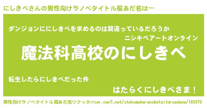 | 意味不明あだ名 | 『自称にしきべ』『ペロリンにしきべ』 |