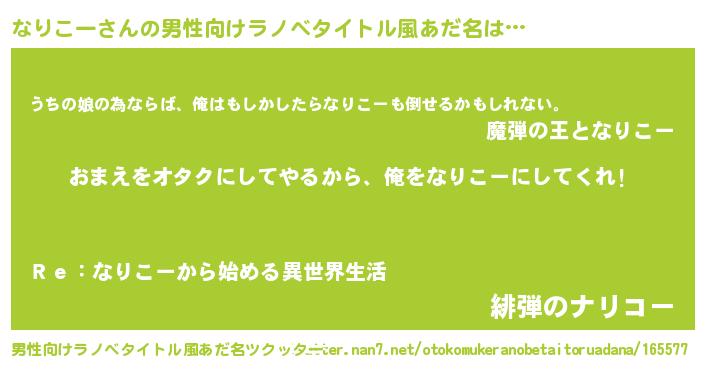 | 女子向けラノベタイトル風あだ名 | 『なりこー恋絵巻』『なりこー伯爵の花嫁』 |