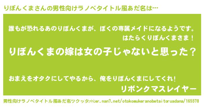 | 女子向けラノベタイトル風あだ名 | 『りぼんくま様がみてる』 |