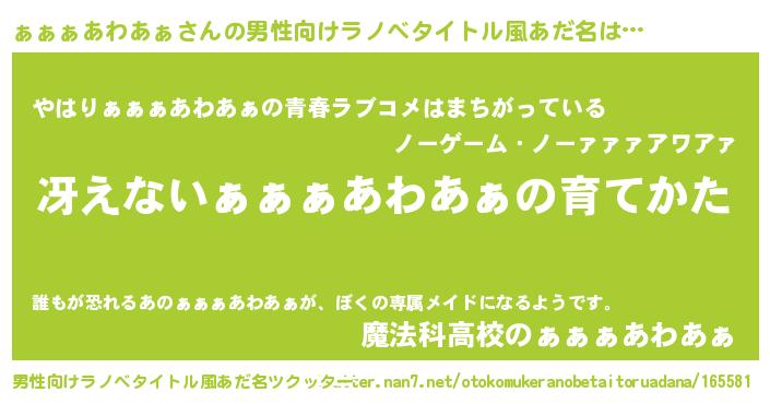 | 胡散臭い通販商品みたいなあだ名 | 『世界が平和になる高級そうな皿…その名も「ぁぁぁあわあぁ」』 |