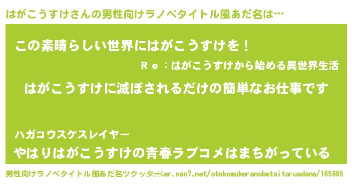 | 意味不明あだ名 | 『住所不定無職はがこうすけ(39歳)』 |