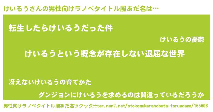 | ヘコむあだ名 | 『けいるう(小並感)』『けいぷりん』 |