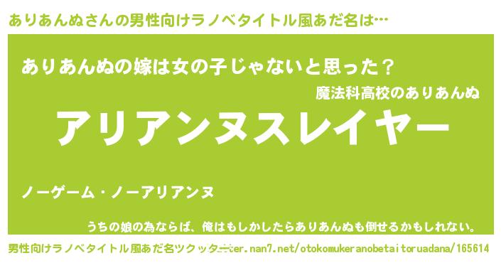 | 胡散臭い通販商品みたいなあだ名 | 『信頼と実績のサプリメント…その名も「ありあんぬ」』 |