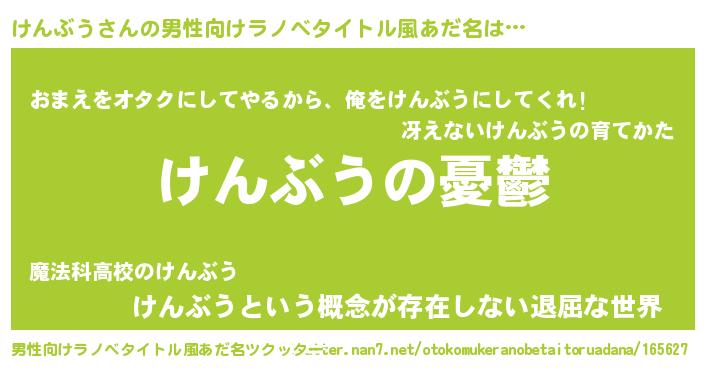 女子向けラノベタイトル風あだ名 | 『けんぶう姫と円卓の騎士』 |