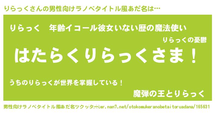 | 伝説のあだ名 | 『伝説の竜騎士りらっく』 |