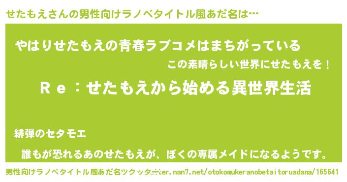| 女子向けラノベタイトル風あだ名 | 『せたもえストレイドッグス』 |