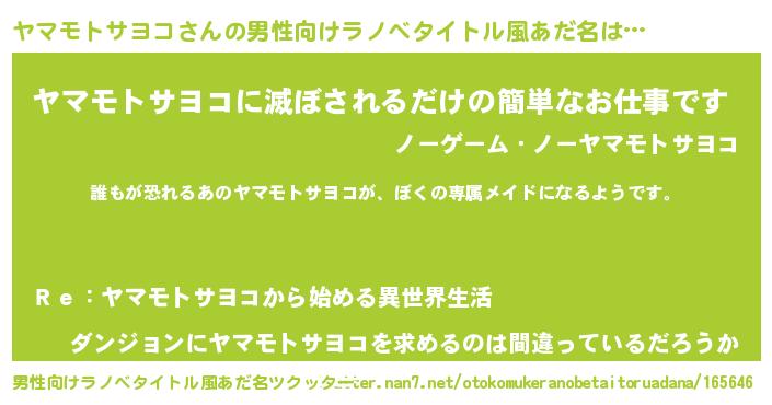 | 女子向けラノベタイトル風あだ名 | 『ヤマモトサヨコの契約王妃』 |