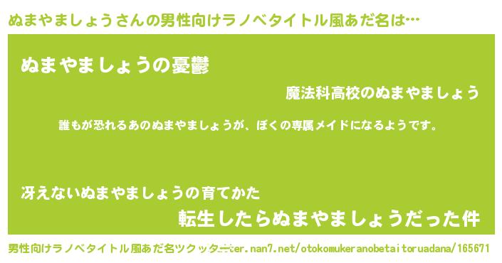 | 胡散臭い通販商品みたいなあだ名 | 『来世でも幸せになれる健康食品…その名も「ぬまやましょう」』 |