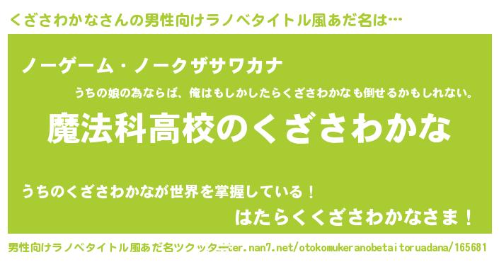 | 意味不明あだ名 | 『自称くざさわかな』 |