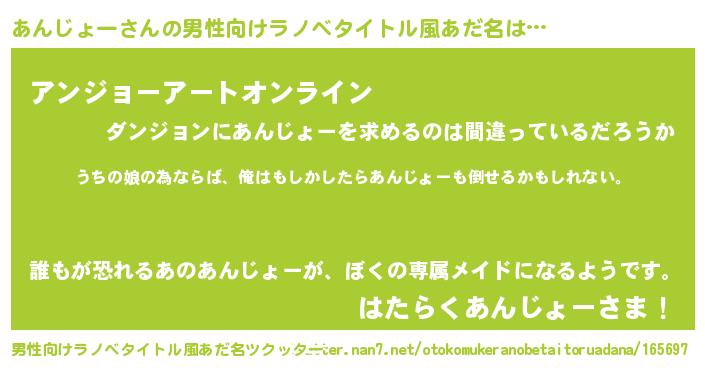 | ファンタジー風あだ名 | 『エターナルアンジョーー』『アンフェル』 |