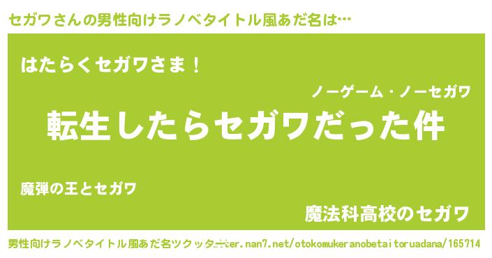 | ヒーロー風カッコイイあだ名 | 『サイバー戦士セガワ』『仮面セガダー』 |