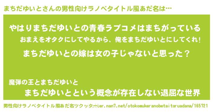 | 意味不明あだ名 | 『とにかく怪しいまちだゆいと』 |