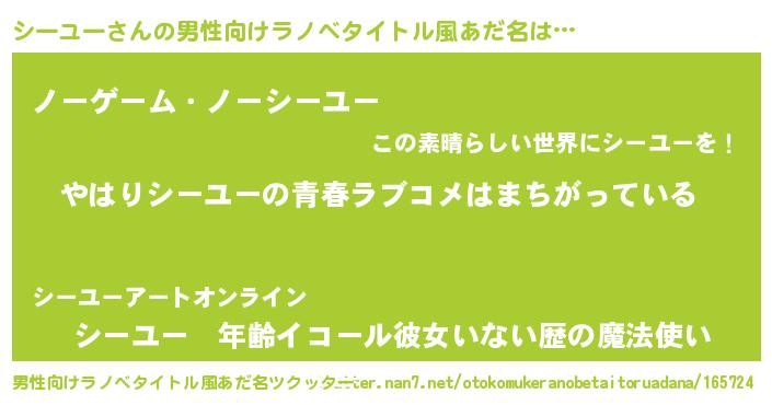 | 胡散臭い通販商品みたいなあだ名 | 『幸せが訪れる高級そうな絵画…その名も「シーユー」』 |