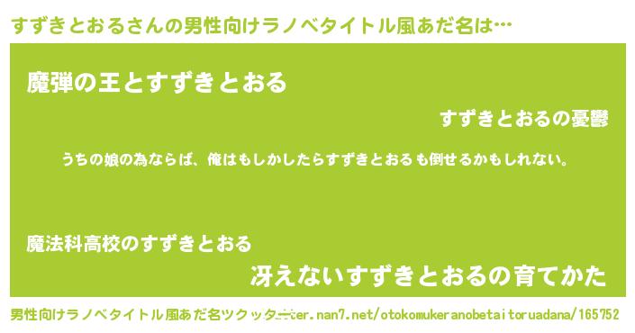 | 女子向けラノベタイトル風あだ名 | 『すずきとおる伯爵の花嫁』 |