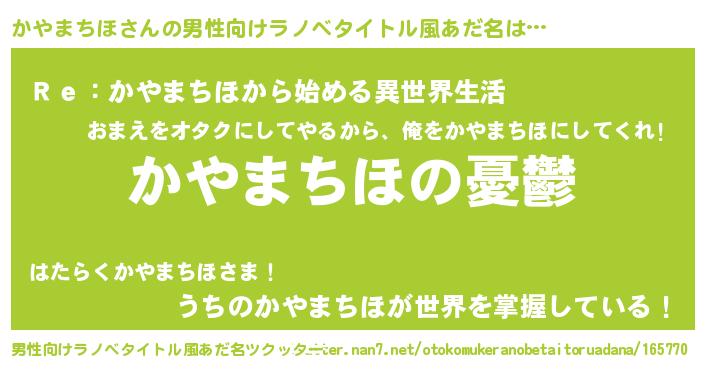 | 女子向けラノベタイトル風あだ名 | 『(仮)かやまちほのやんごとなき事情』 |