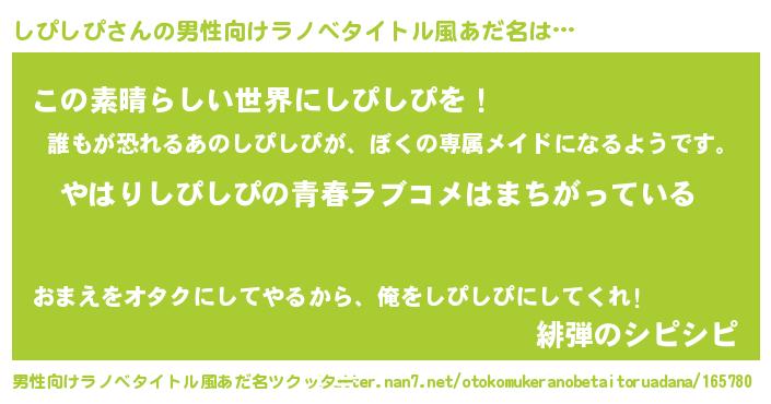 | 胡散臭い通販商品みたいなあだ名 | 『幸せが訪れる高級そうな絵画…その名も「しぴしぴ」』 |