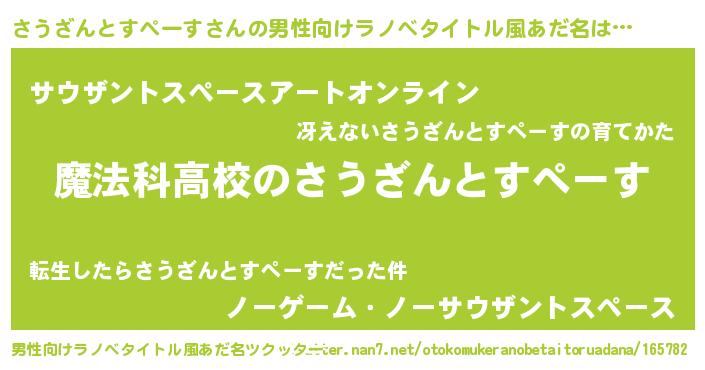 | 意味不明あだ名 | 『自称さうざんとすぺーす』 |