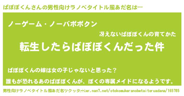 | ヘコむあだ名 | 『ばぼぼくん(苦笑)』『ばぼ太郎』 |